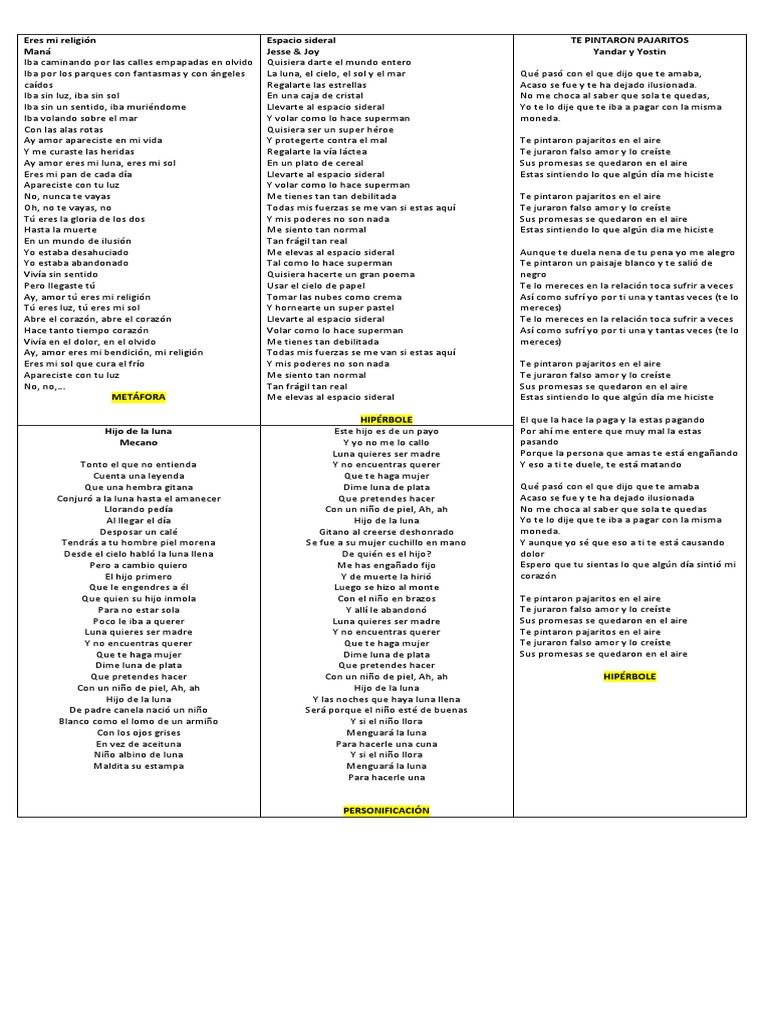 Ii Lee Atentamente La Siguiente Cancion E Identifica En Ella Las Siguientes Figuras Literarias Brainly Lat