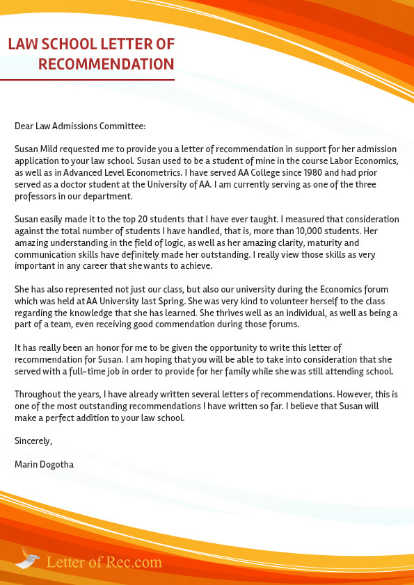 How To Write A Good Recommendation Letter For Law School From An Employer