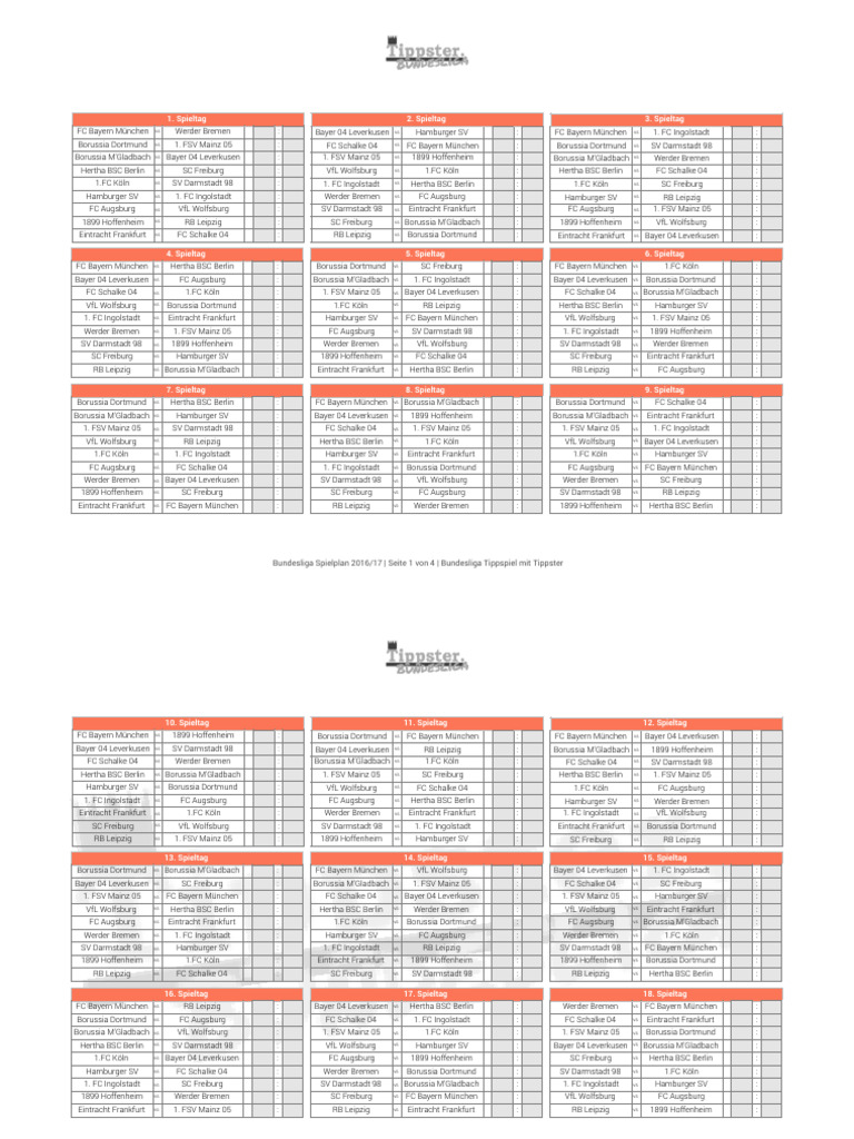 Bundesliga Spielplan zum Ausdrucken, Tippen & Download
