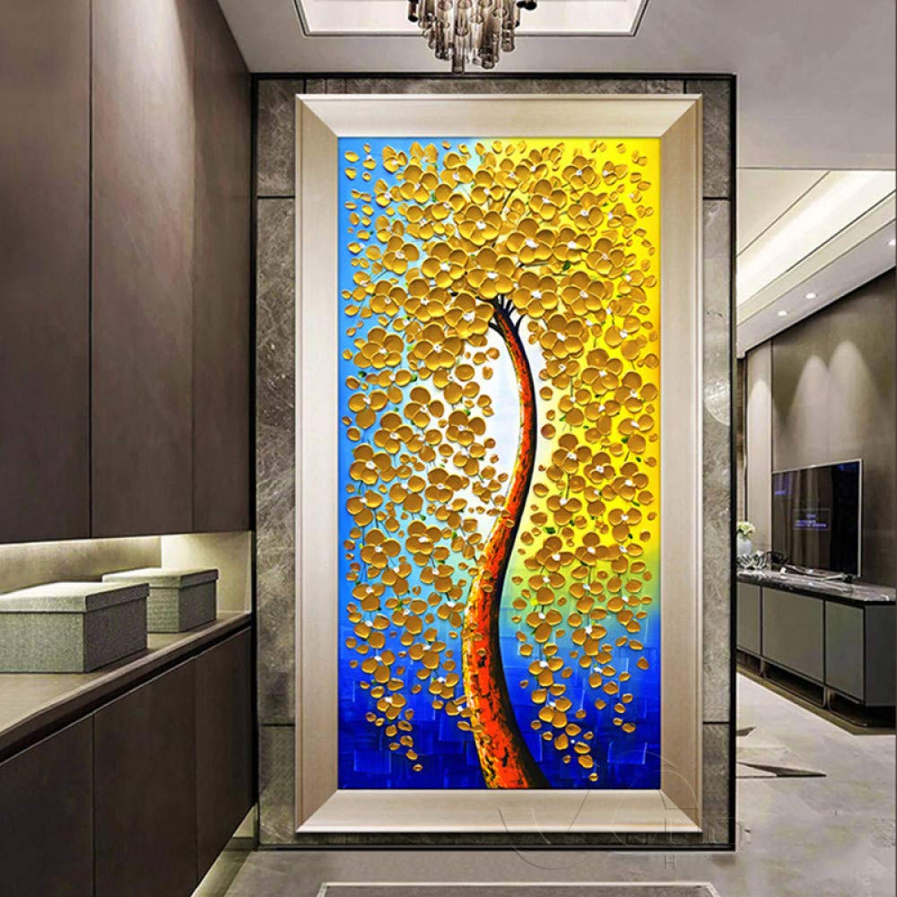 Gbwzz Pintado a Mano Abstracto espátula Flor Pintura al óleo Sobre Lienzo Pintado a Mano Dinero árbol Pared Pintura al óleo,70x140cm Hogar y cocina phincon.com